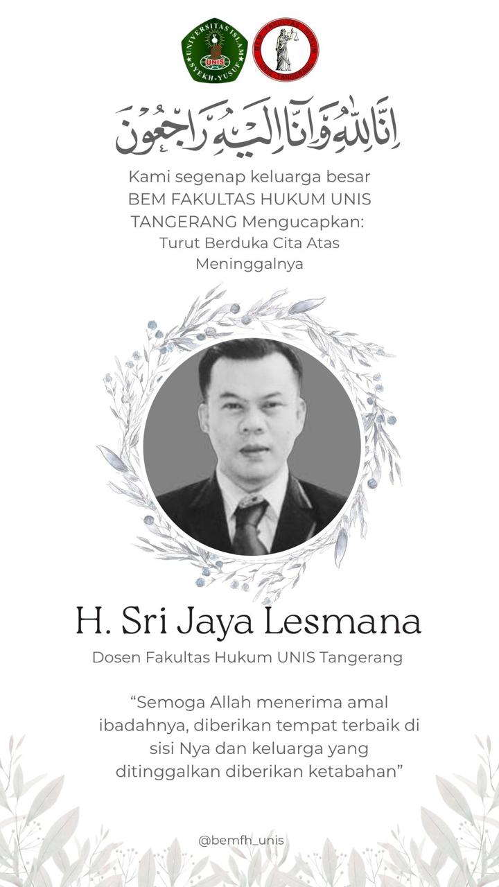 Kami segenap Jajaran Redaksi Mata Tinta Rakyat. com Turut Berdukacita, Innalillahi Wainnailaihi Raji’un, telah berpulang ke Rahmatullah Bapak H. SRI JAYA LESMANA, S.H., M.H., Dosen Fakultas Hukum Universitas Islam Syekh-Yusuf Tangerang.