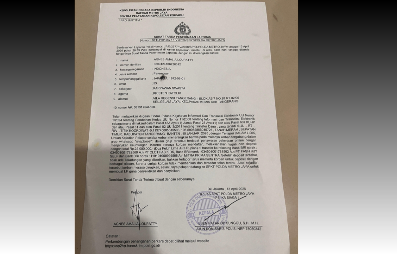 MATA TINTA RAKYAT.COM. TANGERANG – Dunia investasi digital kembali diguncang skandal. Aplikasi Snapboost, yang menjanjikan keuntungan instan melalui tugas sederhana di media sosial, diduga kuat melakukan praktik investasi bodong. Hingga saat ini, jumlah korban diperkirakan telah melampaui 700 orang dengan total kerugian material ditaksir mencapai lebih dari Rp2 miliar.